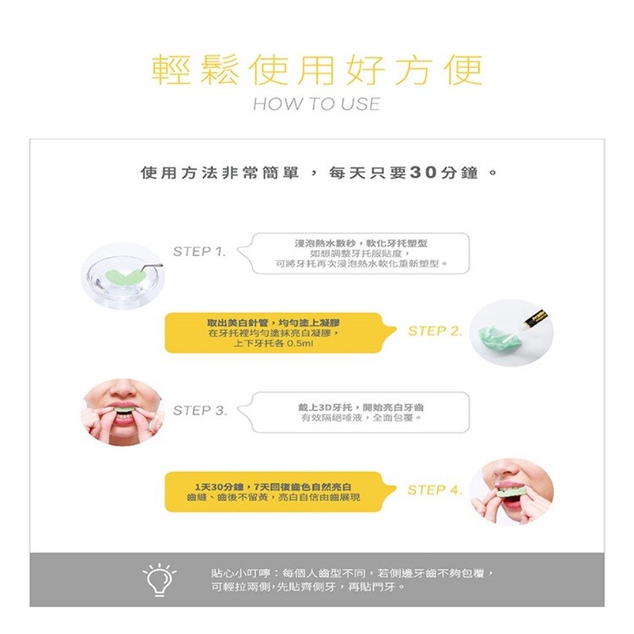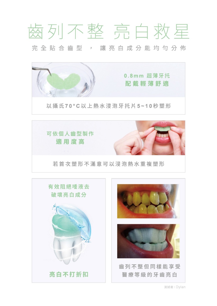 *獨家牙托技術,符合個人齒型,齒列不整的人也能有效美白